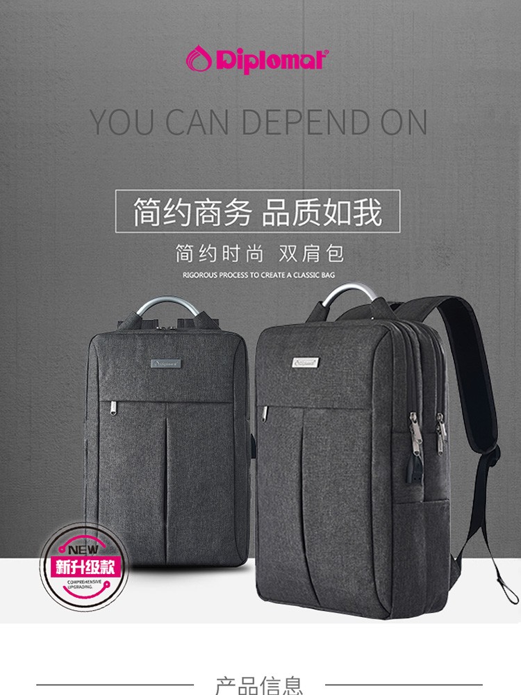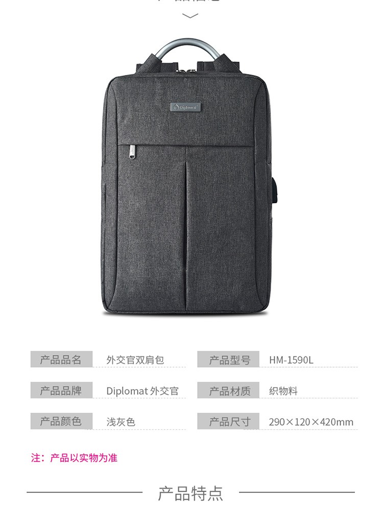 商品名称:Diplomat 外交官双肩包 HM-1590L 灰色