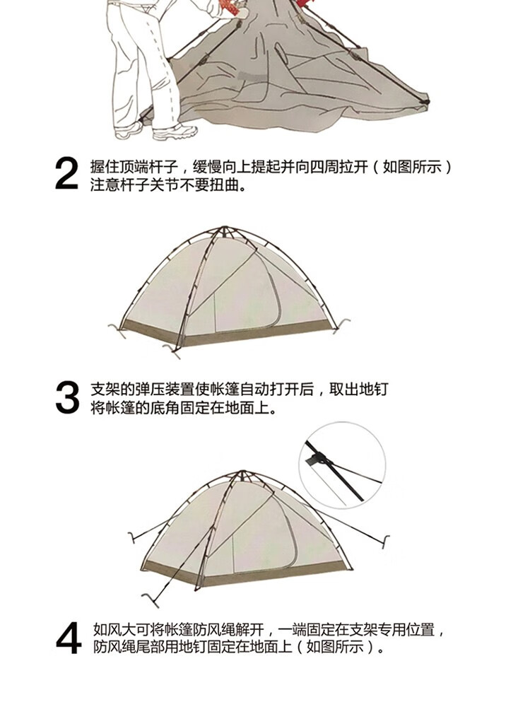 帐篷搭建方式 :弹簧自动帐
