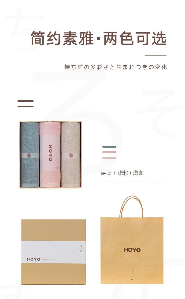 商品名称:HOYO 和和风长绒棉毛巾三件套 7513 JP8418(湛蓝+樱粉+浅咖)
