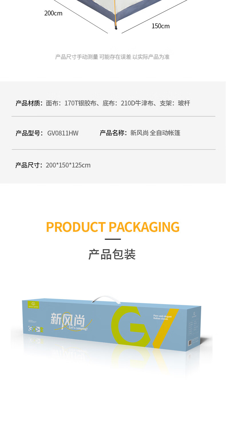 商品名称:卓凡尼•华伦天奴 新风尚全自动帐篷 GV0811HW