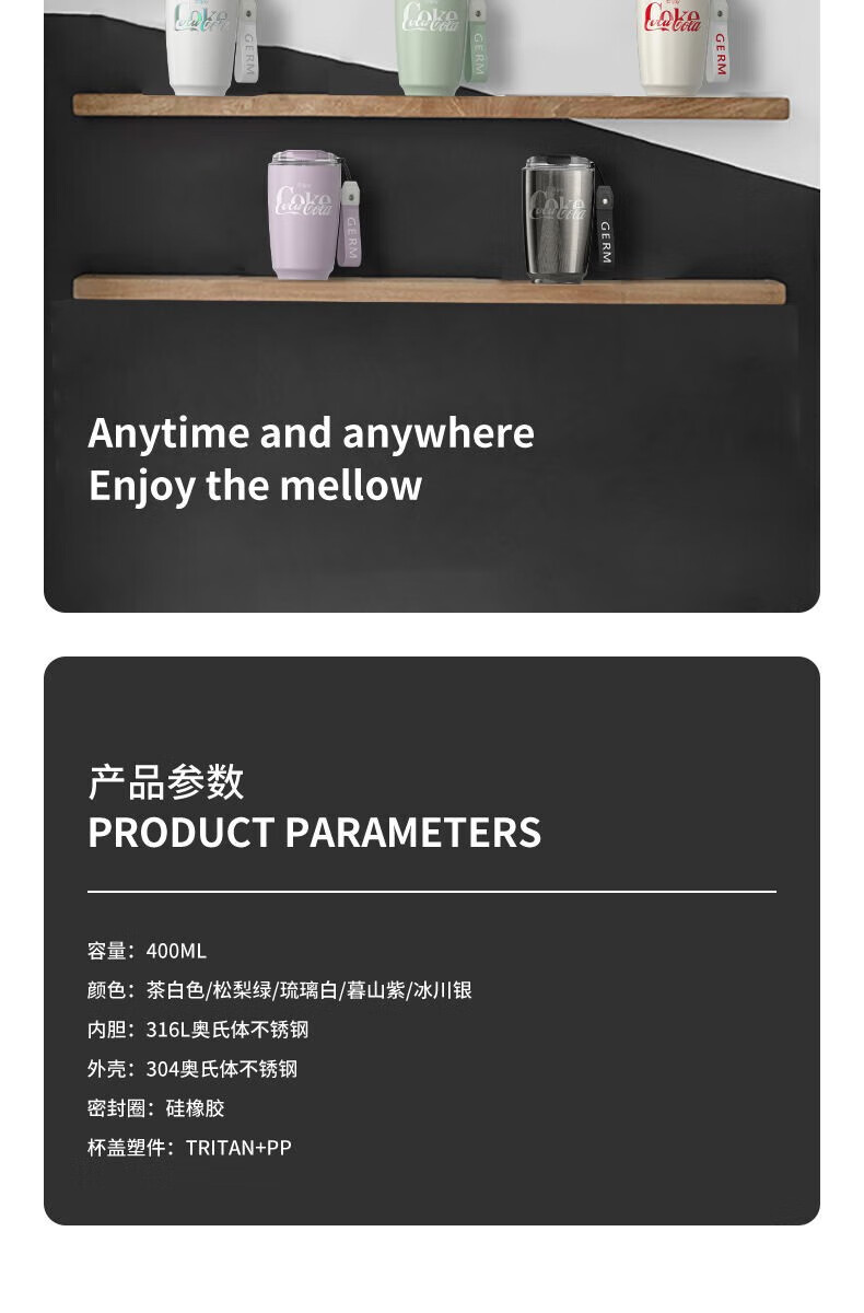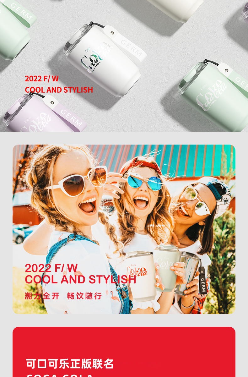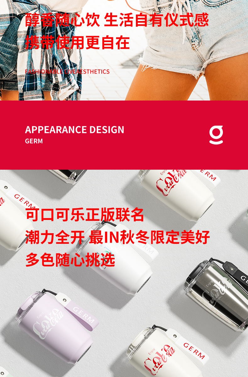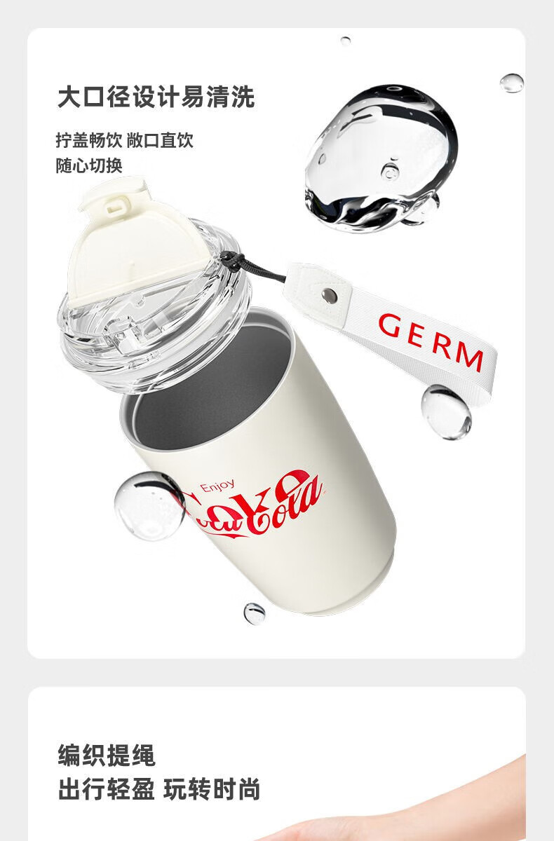 商品名称:格沵GERM 可口可乐联名款摩卡保温杯(琉璃白) GE-CK22AW-B9-1