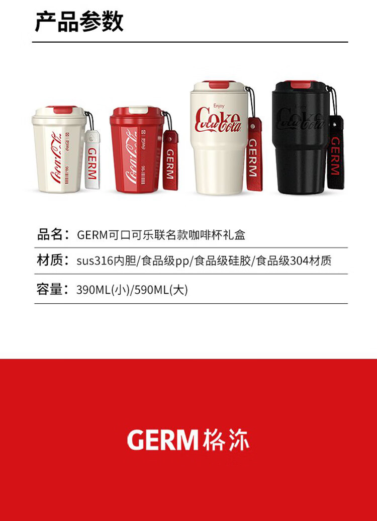 商品名称:格沵(germ)可口可乐联名款咖啡杯套装(黑红组合) GE-CK22SS-K2
