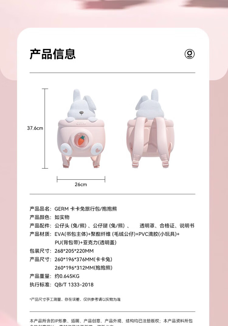 商品名称:格沵(germ) 抱抱熊旅行包(可可色)GE-22AW-BC1