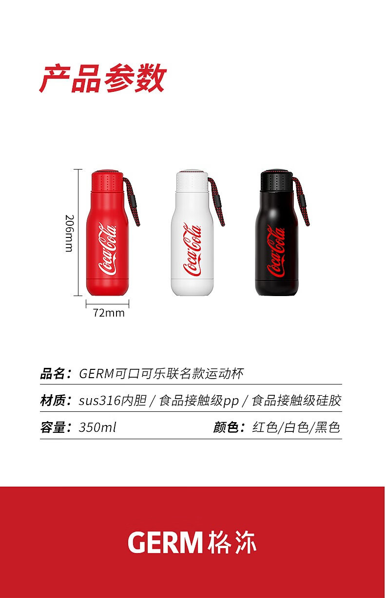 商品名称:格沵 可口可乐联名款运动杯350ml GPC-2141VP-CCB(黑)