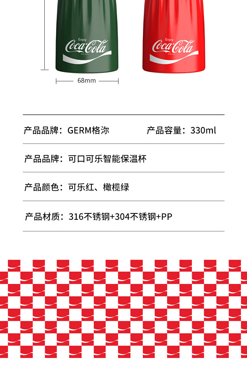 商品名称:格沵(germ)可口可乐联名款口乐保温杯330mL GPS-2017VP-CCDR(红) 330ml