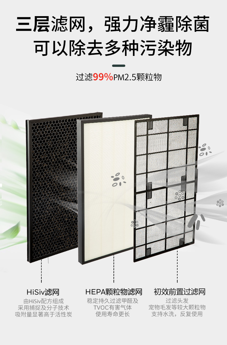 过滤污染物类型 :TVOC;甲醛;PM2.5