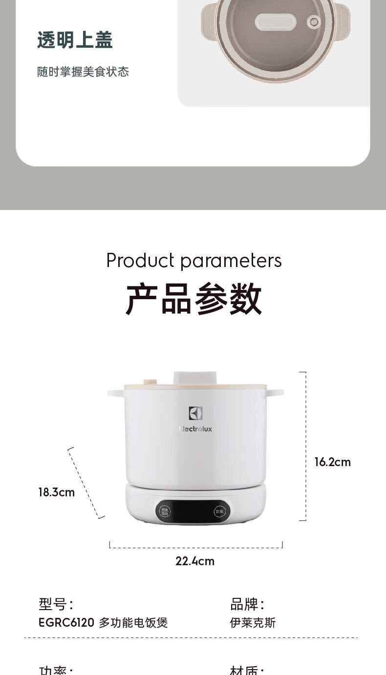 商品名称:伊莱克斯 多功能电饭煲 EGRC6120