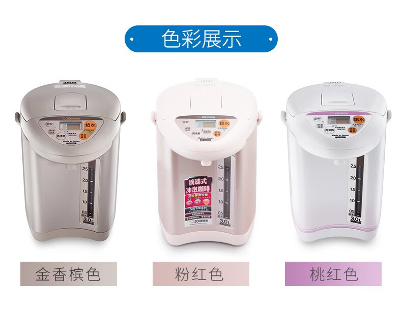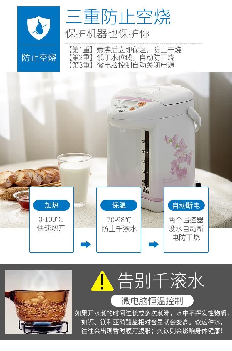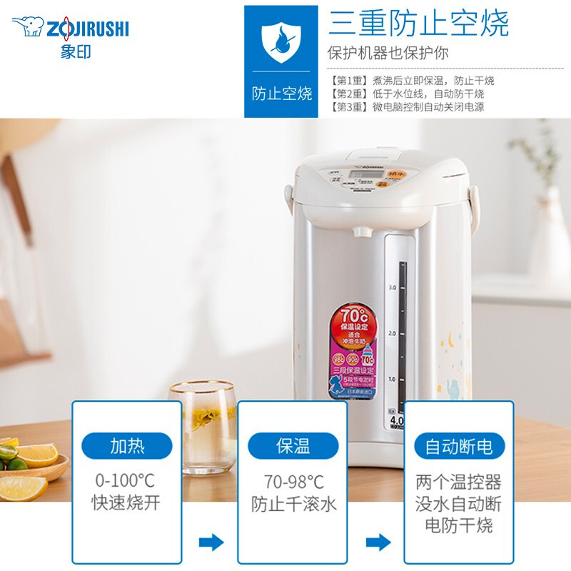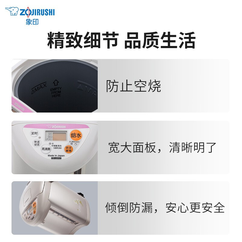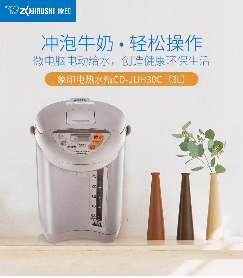 商品名称:象印(ZO JIRUSHI)电热水壶日本原装进口家用热水瓶烧水保温一体电水壶CD-JUH JUH30C-金香槟色