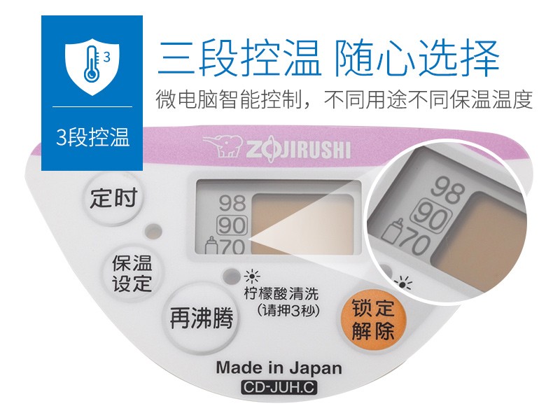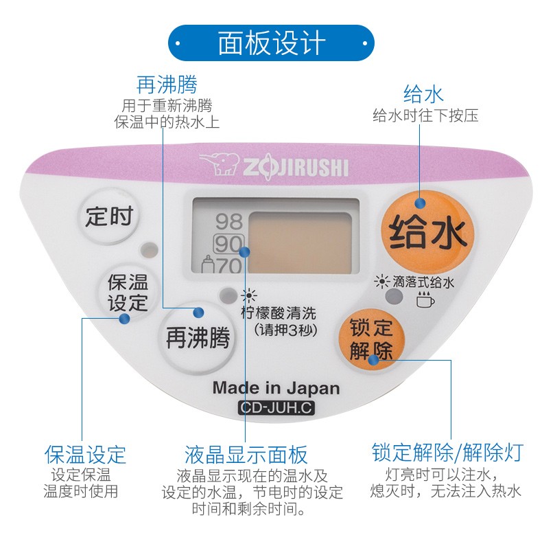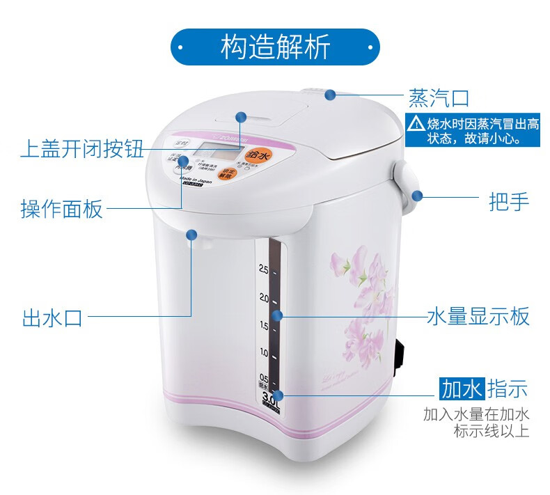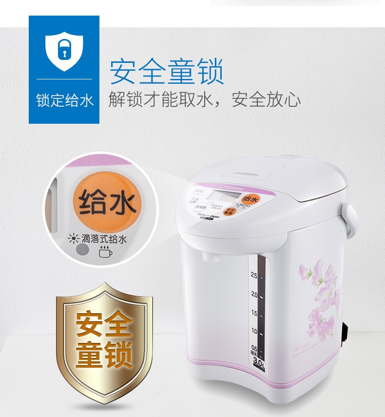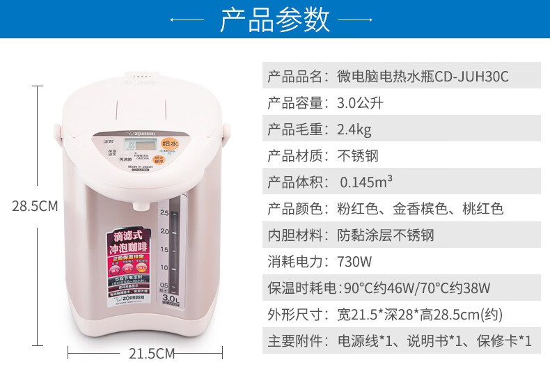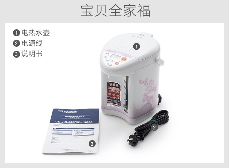 商品名称:象印(ZO JIRUSHI)电热水壶日本原装进口家用热水瓶烧水保温一体电水壶CD-JUH JUH30C-金香槟色