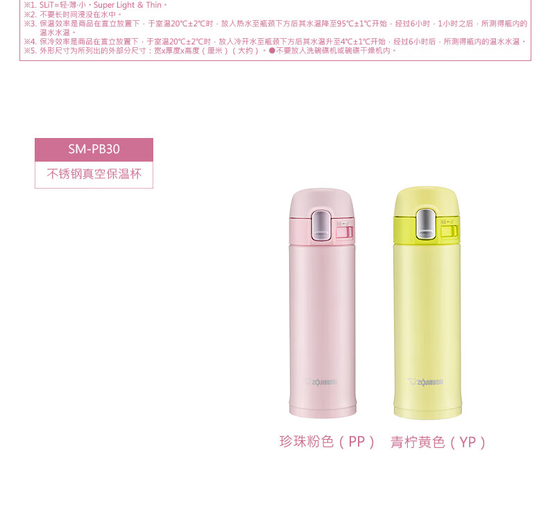 商品名称:象印 SM-PB30 不锈钢真空保温杯 300ml