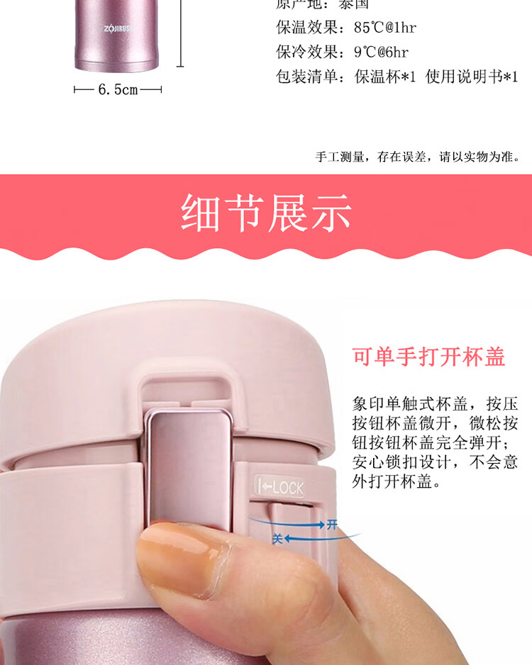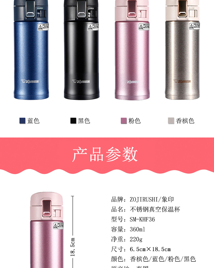 商品名称:象印 SM-KHF36 不锈钢真空车载保温杯 360ML
