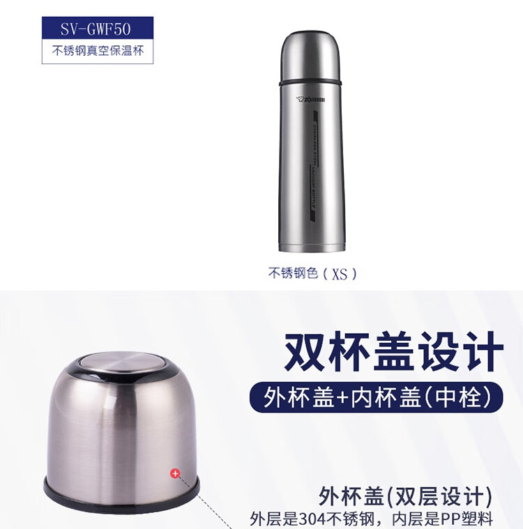 商品名称:象印 SV-GWF50 锈钢真空保温杯(附带杯盖) 500ML