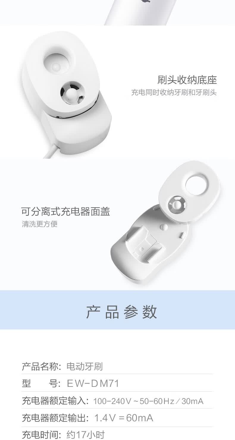 商品名称:松下(Panasonic)电动声波振动牙刷 EW-DM71
