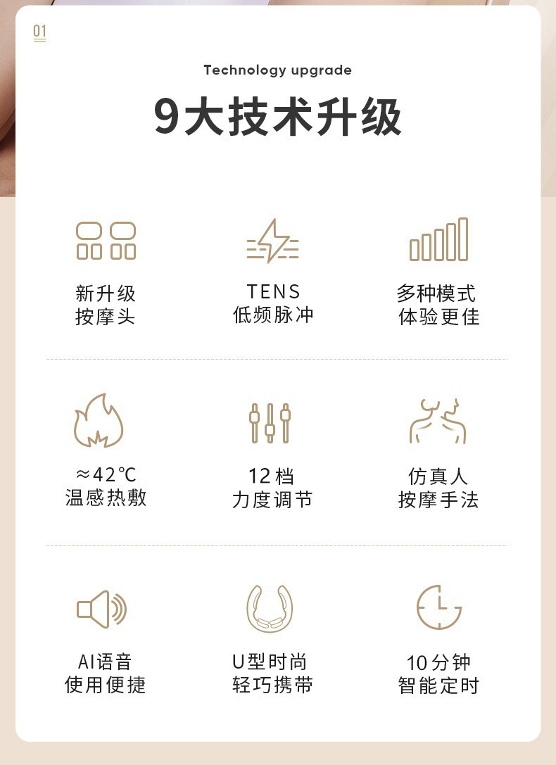 功能 :多档热敷,多模式按摩