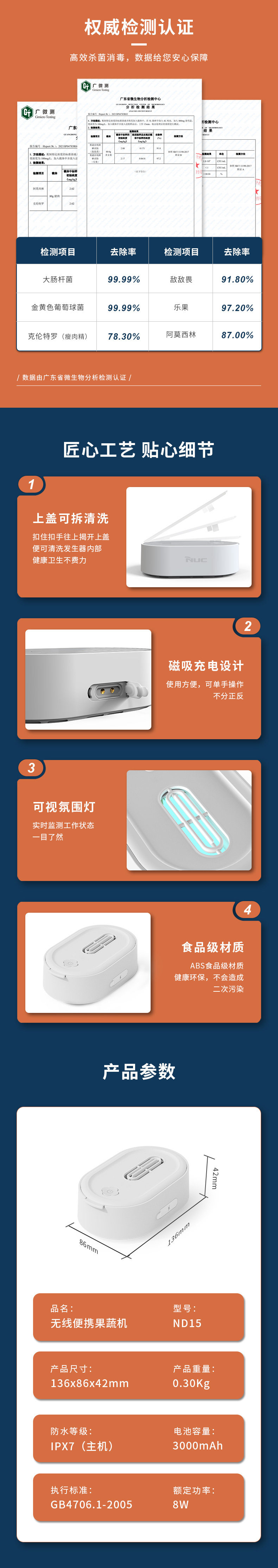 商品名称:NUC 便携智能食材净化器 ND15