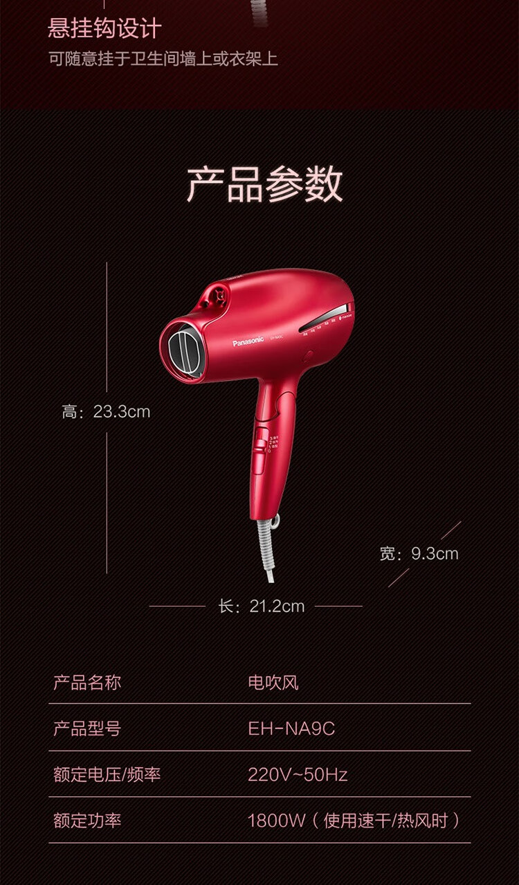 松下(Panasonic)纳诺怡系列电吹风-EH-NA9C