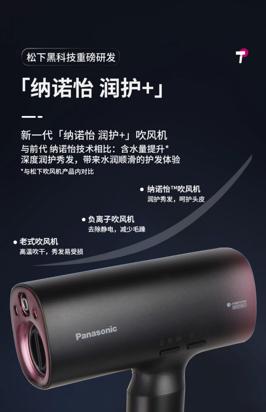 松下(Panasonic)“纳诺怡润护+”吹风机EH-NA0H-K405