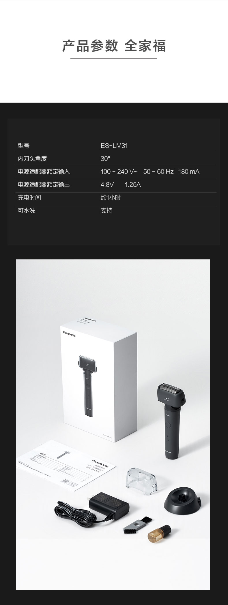 商品名称:松下(Panasonic)小锤子剃须刀(黑色)ES-LM31-K405