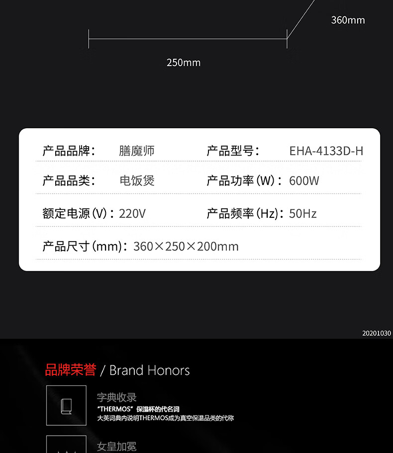商品名称:THERMOS 膳魔师 电饭煲 EHA-4133D-H