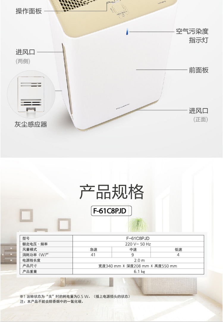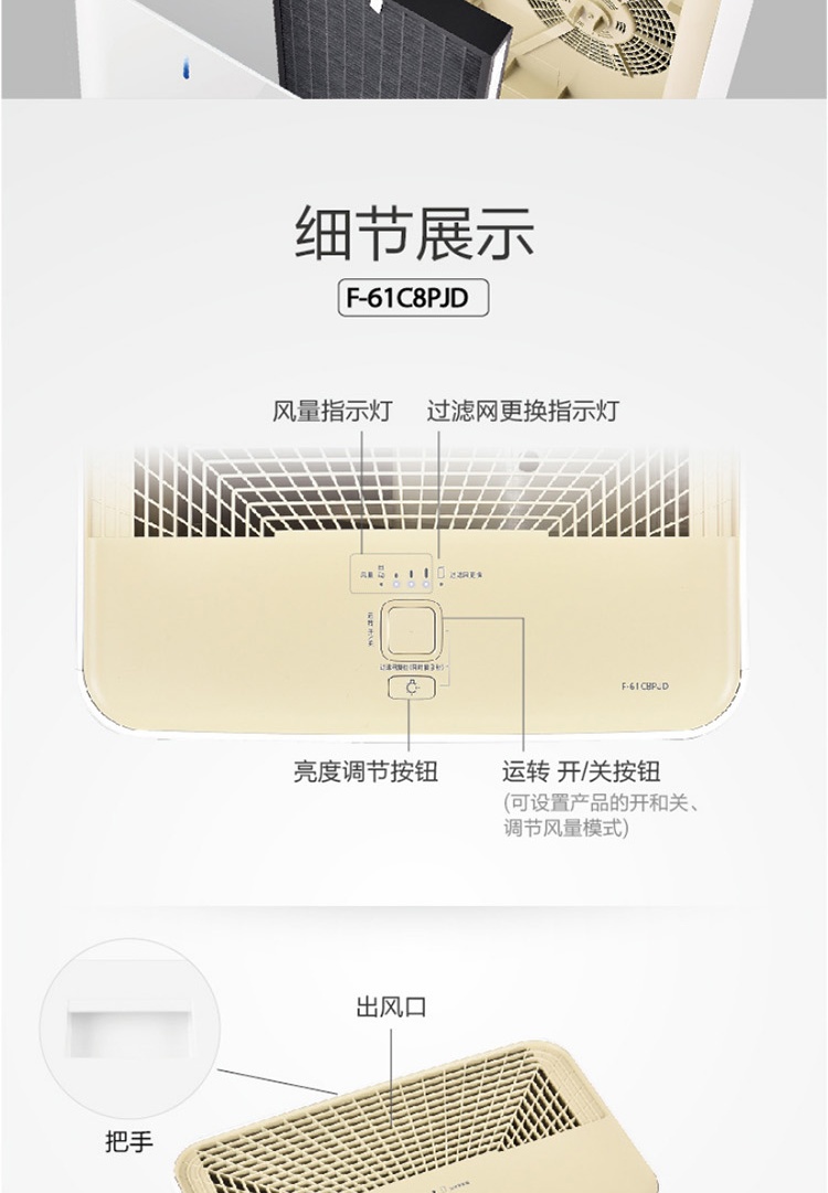 商品名称:松下(Panasonic)空气净化器-F-61C8PJD-C
