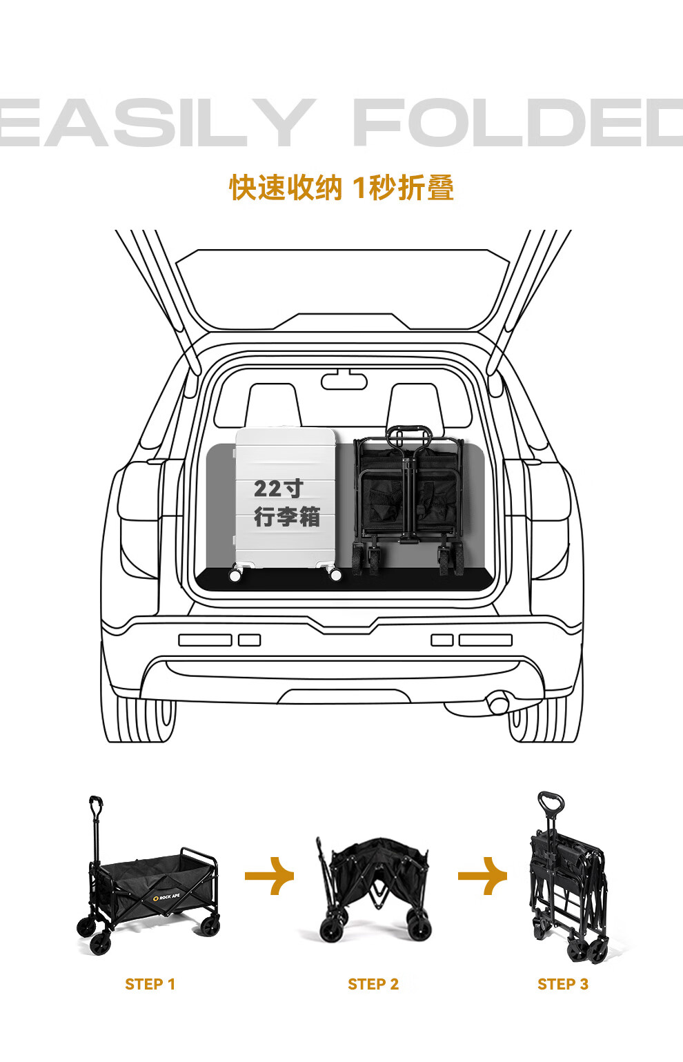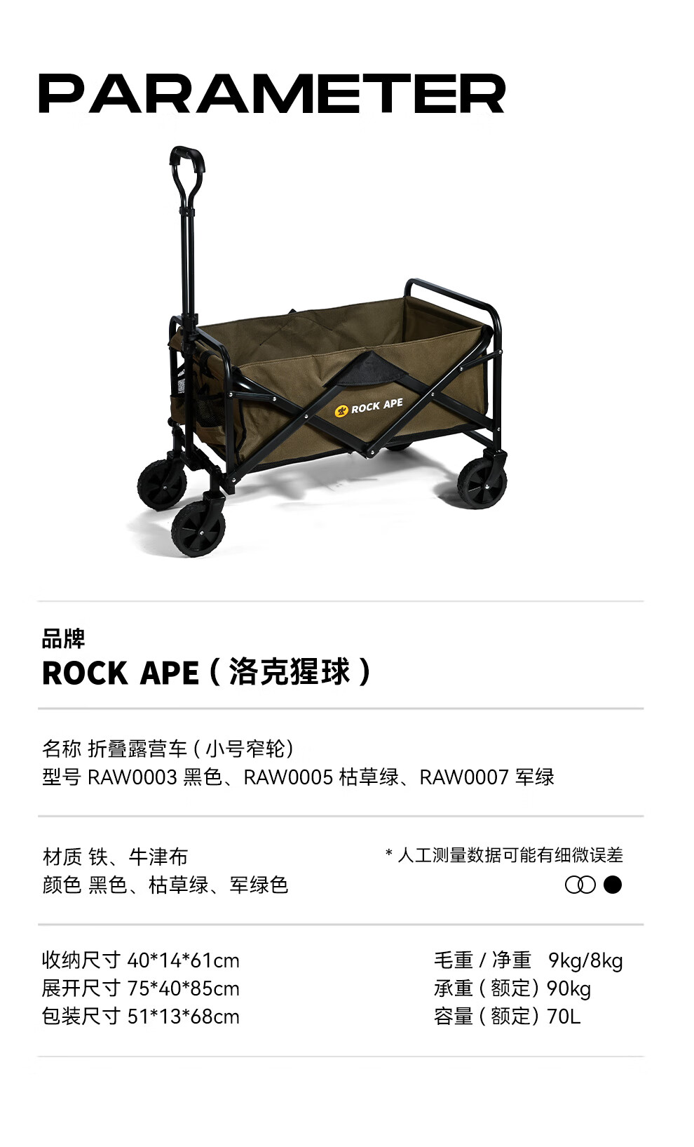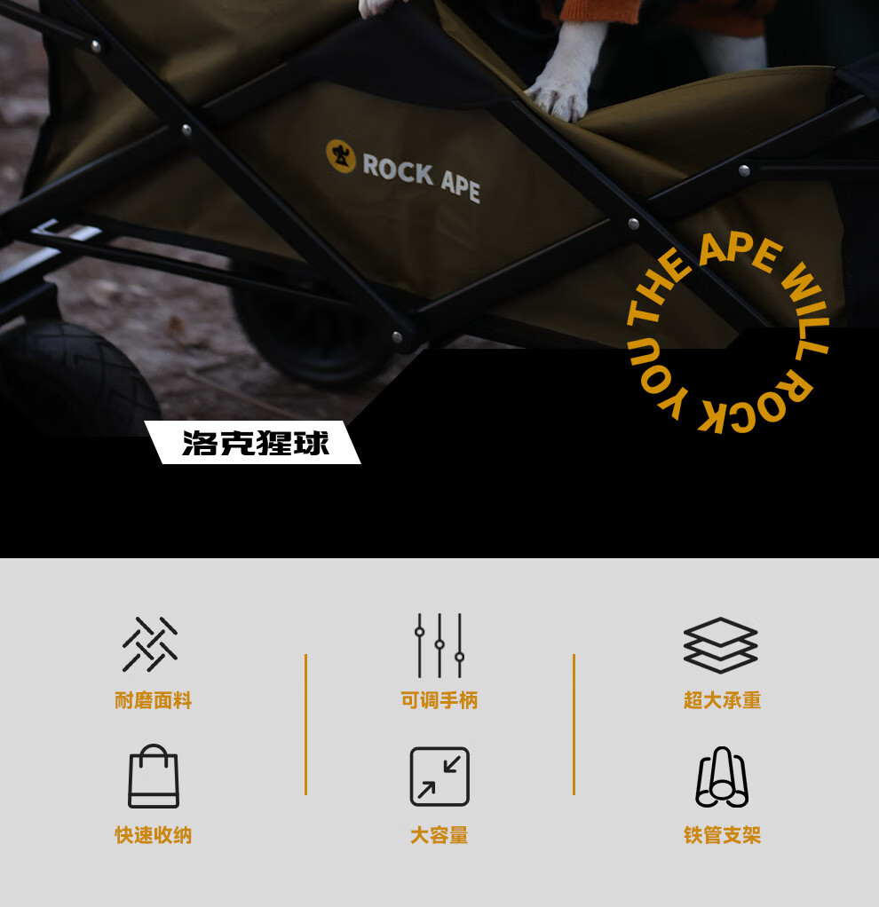 商品名称:洛克猩球 RockApe 折叠露营车(大号越野轮)枯草绿 RAW0004