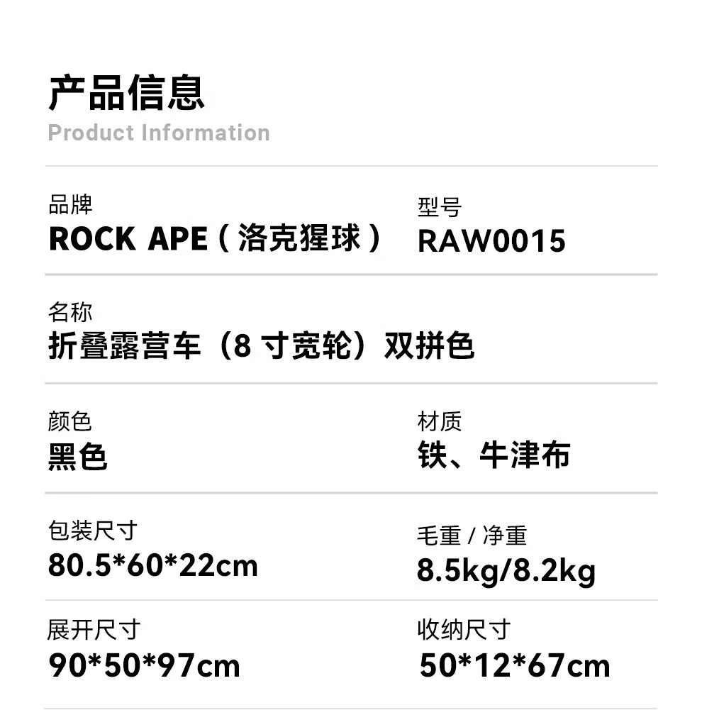 洛克猩球 RockApe 折叠露营车 (小号)黑色 RAW0003
