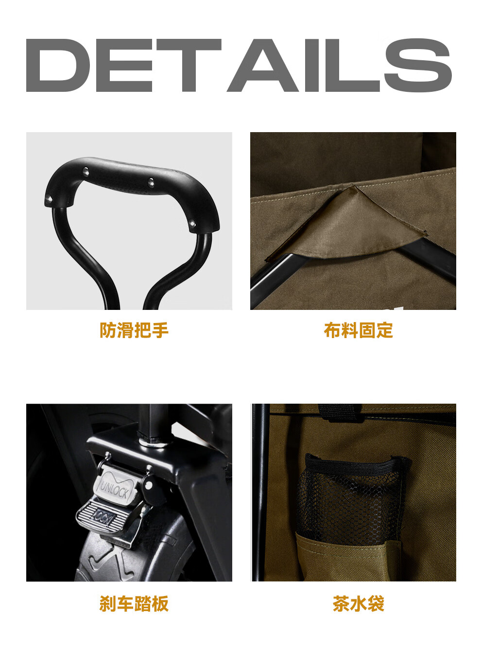 洛克猩球 RockApe 折叠露营车(大号越野轮)枯草绿 RAW0004