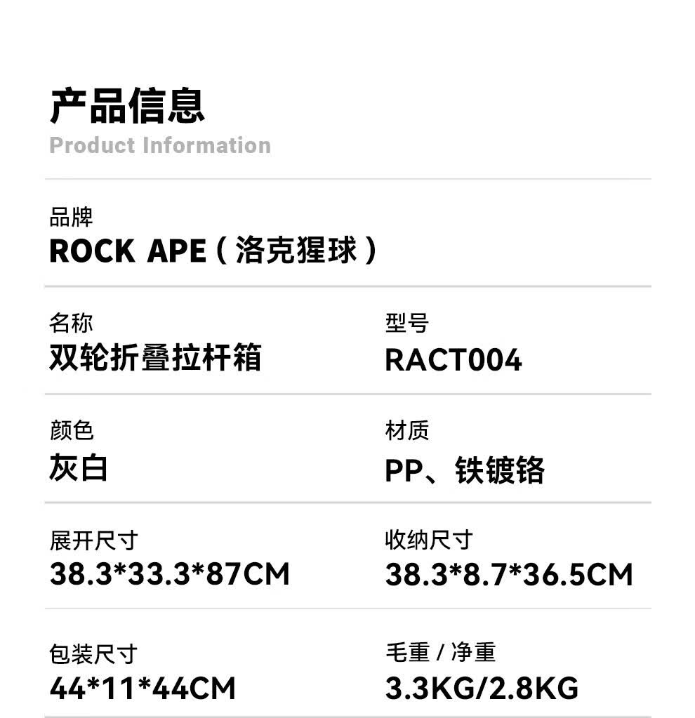 商品名称:洛克猩球 RockApe 双轮折叠拉杆箱 RACT004