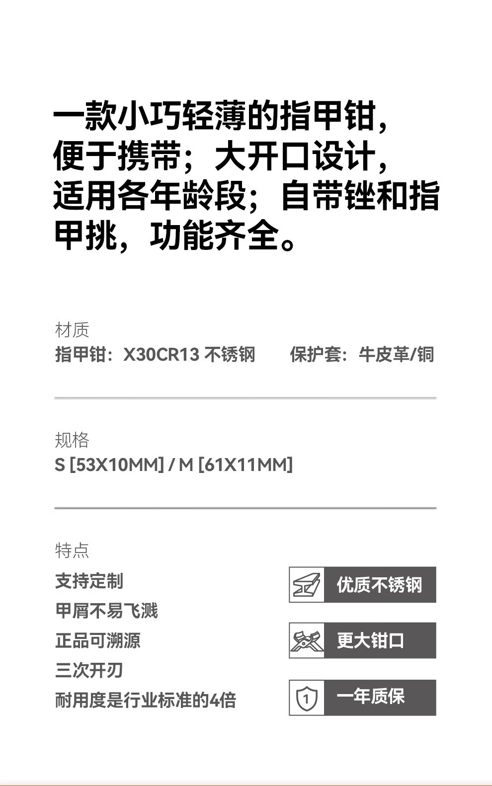 尺寸 :指甲钳62*13MM 钥匙圈:28MM 皮套:75*30MM