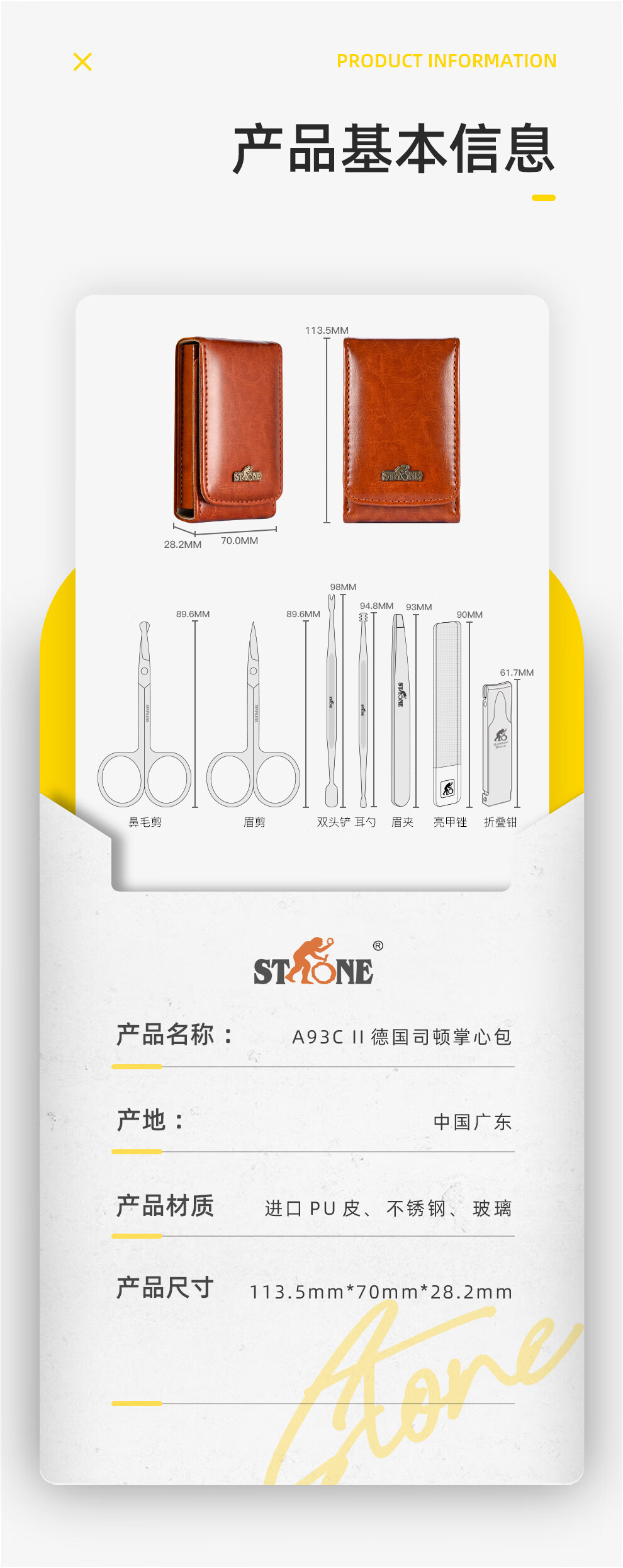 商品名称:司顿(STONE)修容修甲6件皮包套装(配平口鼻毛剪)STR2201-MA
