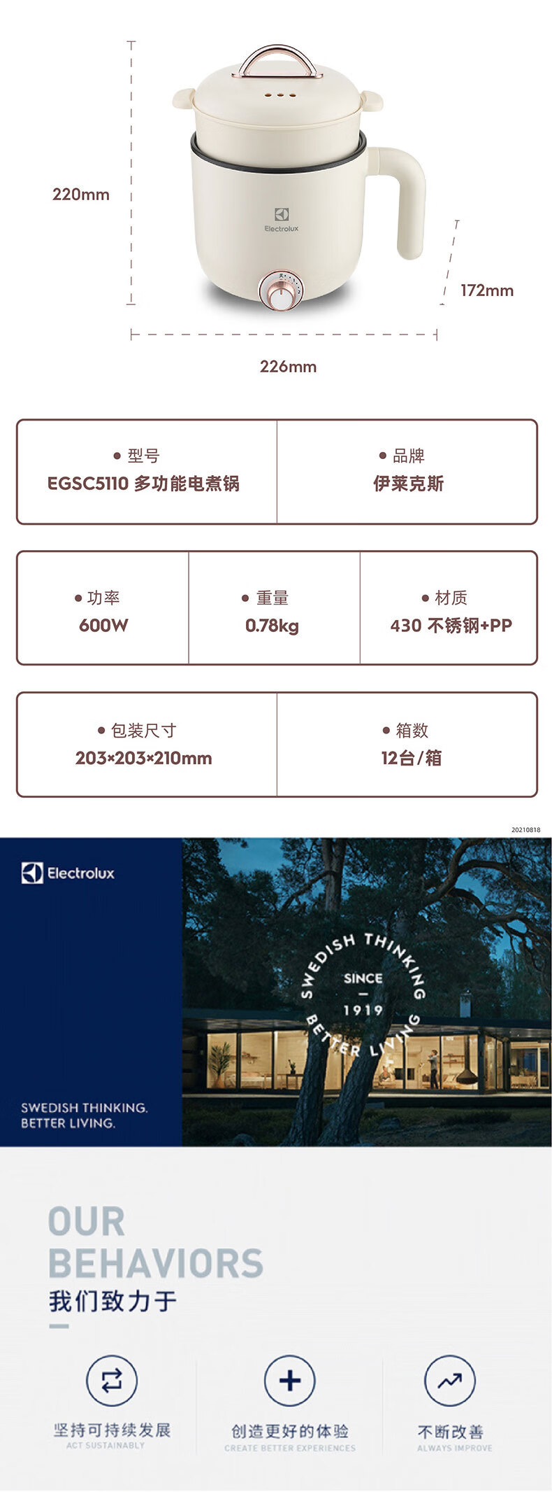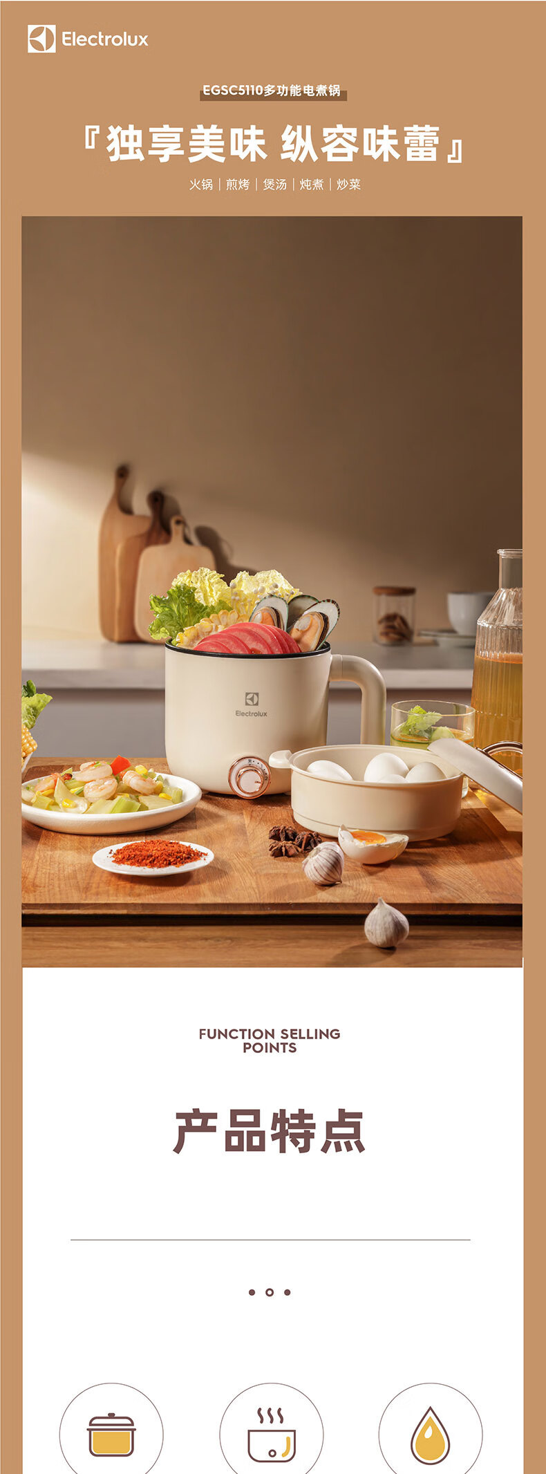 商品名称:ELECTROLUX 伊莱克斯 多功能电煮锅 EGSC5110