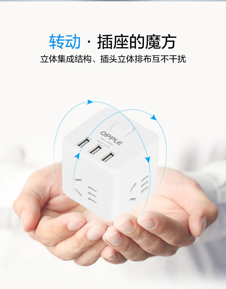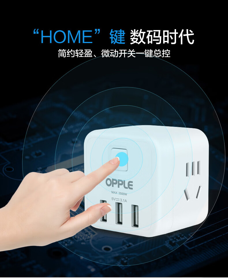 欧普 OPPLE C1502 10A 250V~ 总开关四个五孔三个USB