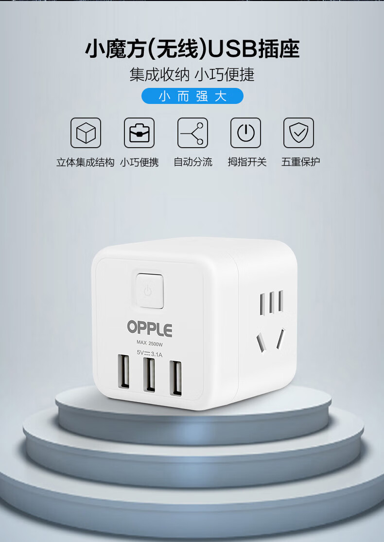商品名称:欧普 OPPLE C1502 10A 250V~ 总开关四个五孔三个USB