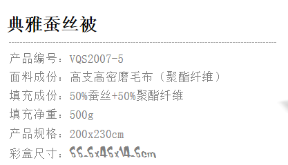 填充物材质 :50%蚕丝+50%聚酯纤维