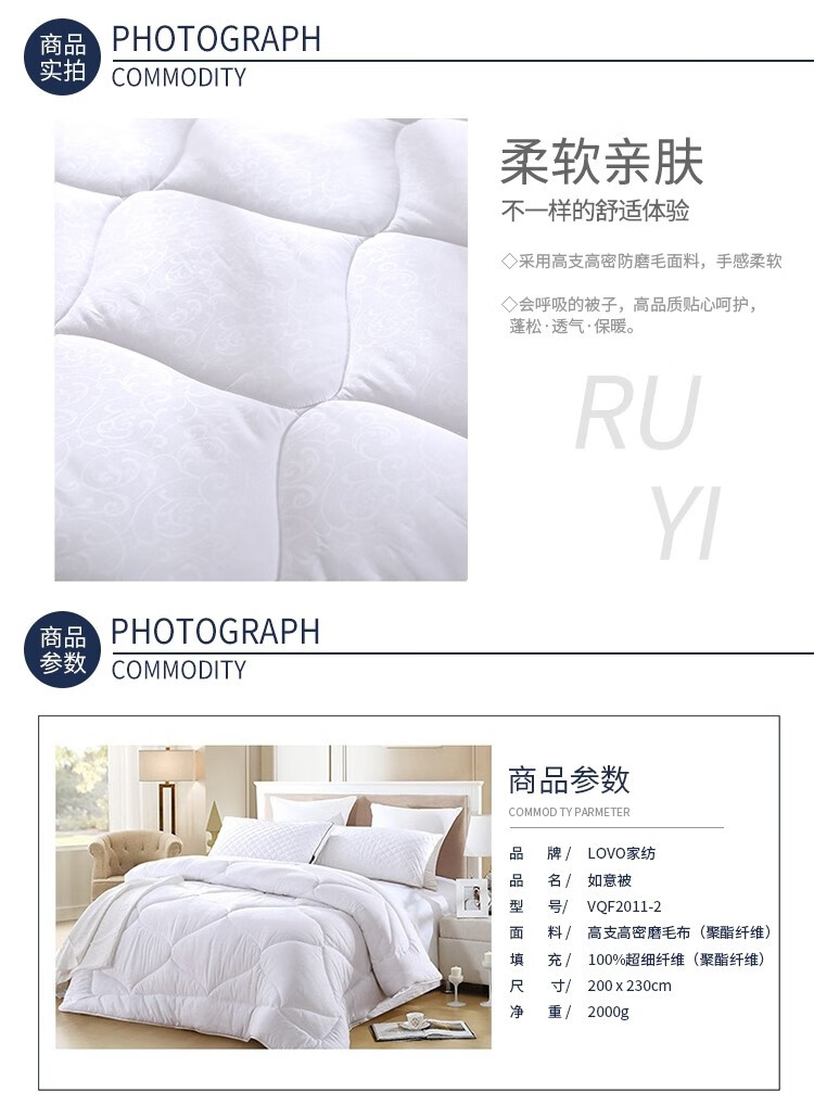 商品名称:LOVO罗莱生活 如意被 VQF2011-2 2000g 200x230(cm)