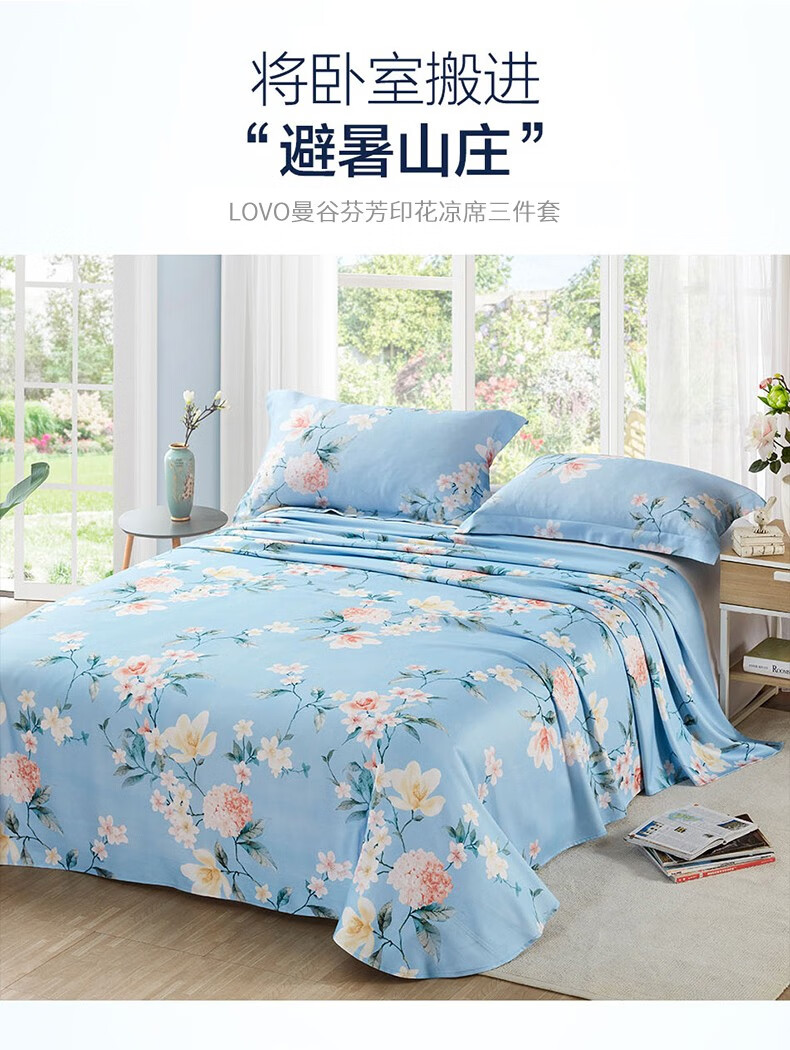 LOVO罗莱生活 曼谷芬芳印花凉席三件套 曼谷芬芳 席子250x245cm