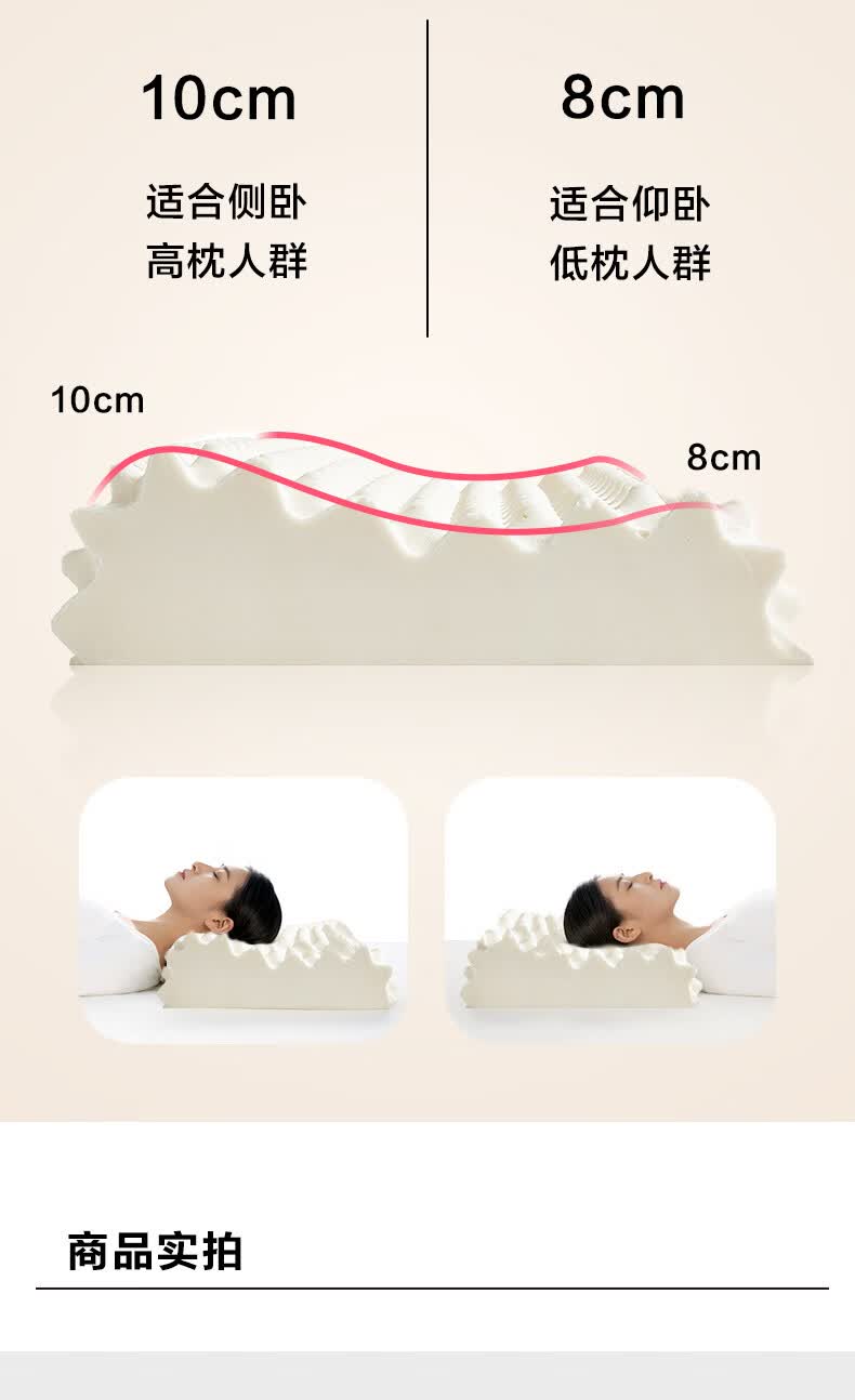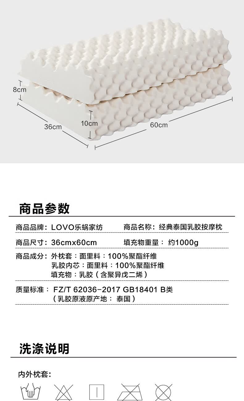 商品名称:LOVO罗莱生活 泰国进口乳胶枕 VPR7315-1 60x36x8/10cm
