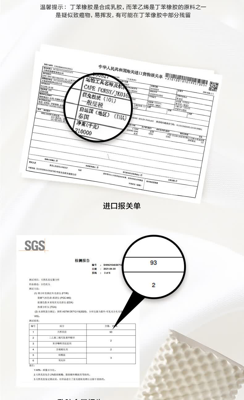 填充材质 :进口乳胶(聚异戊二烯/丁苯橡胶)