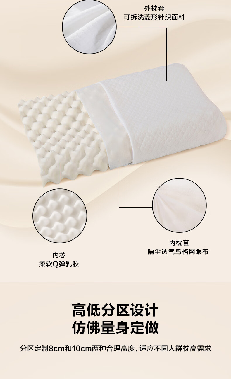 LOVO罗莱生活 泰国进口乳胶枕 VPR7315-1 60x36x8/10cm