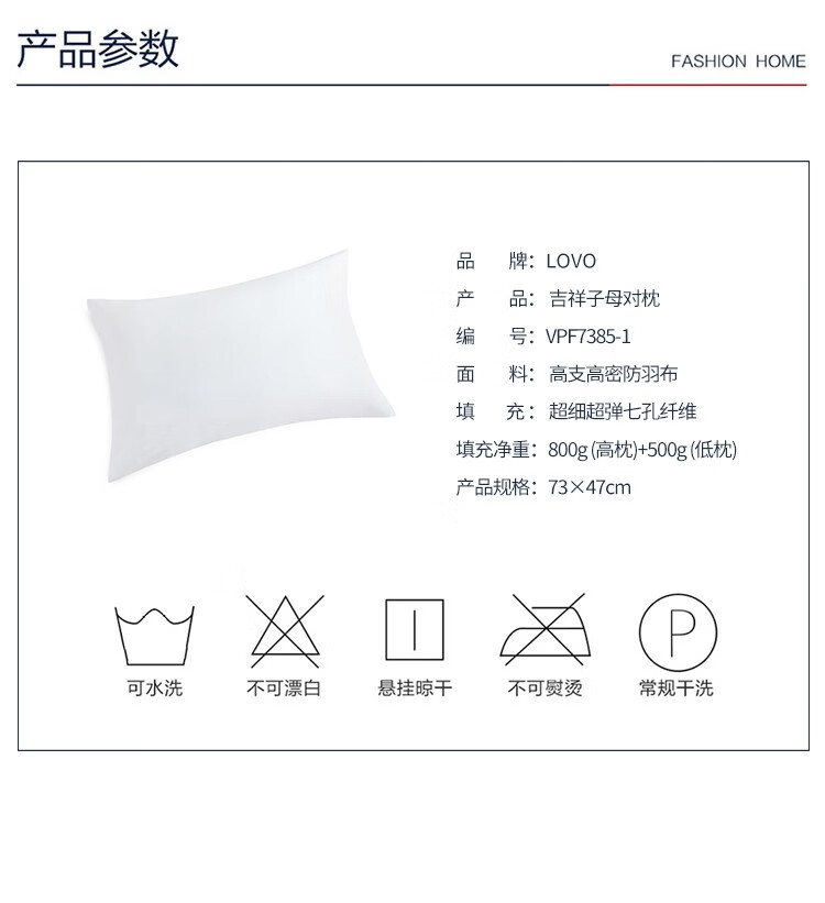 商品名称:LOVO罗莱生活 吉祥子母对枕 VPF7385-1 47x73cm/一对
