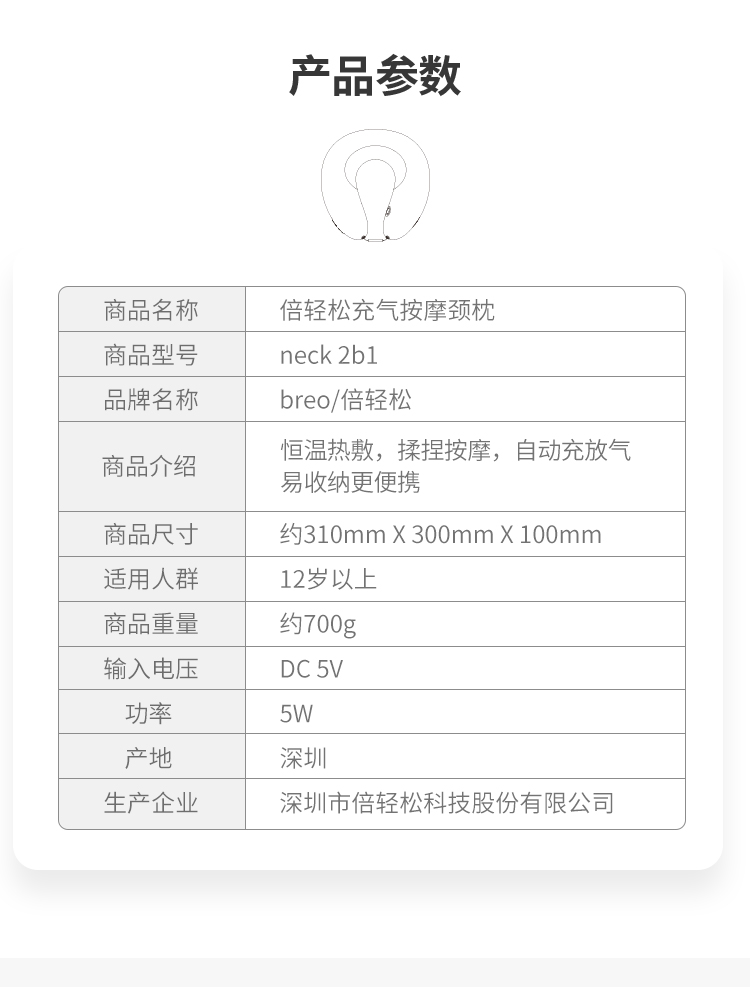 商品名称:倍轻松(breo)充气按摩颈枕iNeck Air2