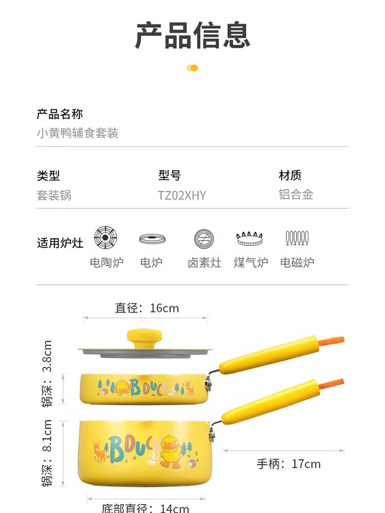 商品名称:炊大皇 B.Duck小黄鸭和风奶锅TZ02XHY 14cm
