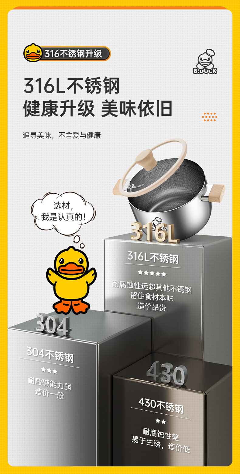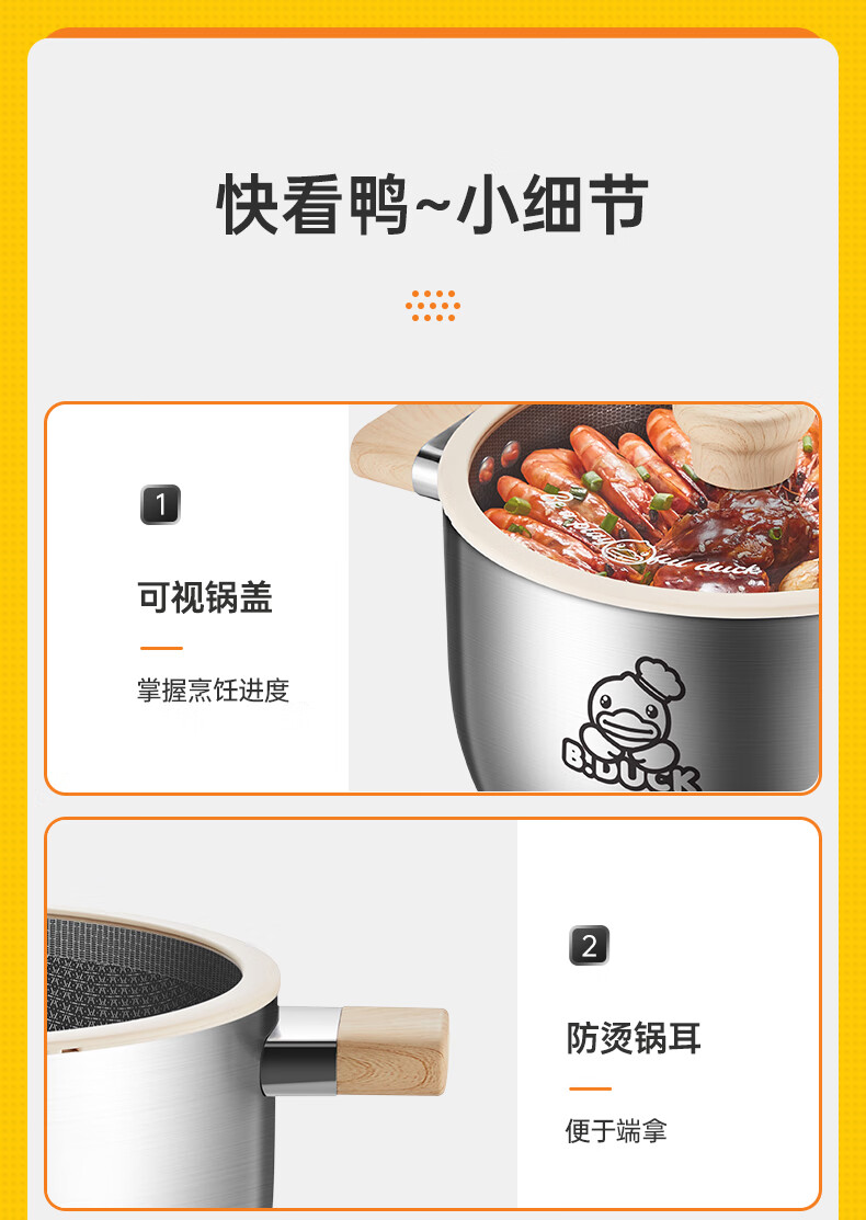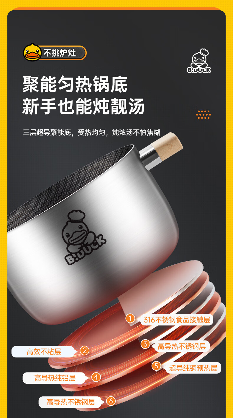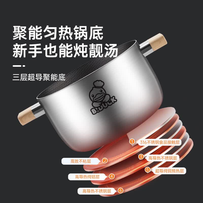 商品名称:炊大皇 小黄鸭316多层钢汤锅 TG22XHYG 22cm