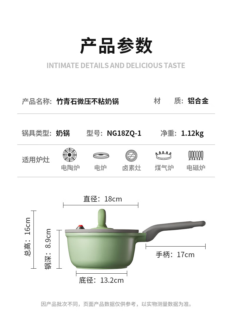 商品名称:炊大皇 竹青石微压不沾奶锅 18cm NG18ZQ-1