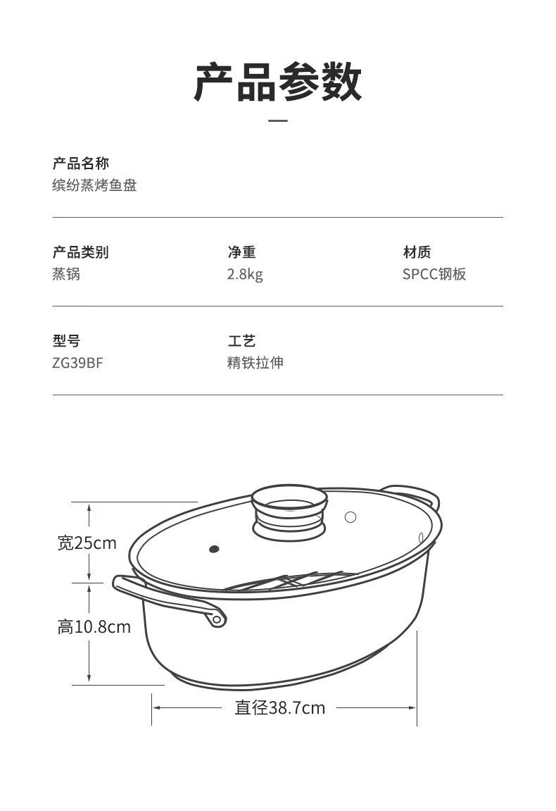 商品名称:炊大皇 缤纷蒸烤鱼盘 ZG39BF 39cm