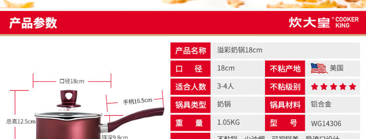 商品名称:炊大皇 汤锅 16CM奶锅 WG14290