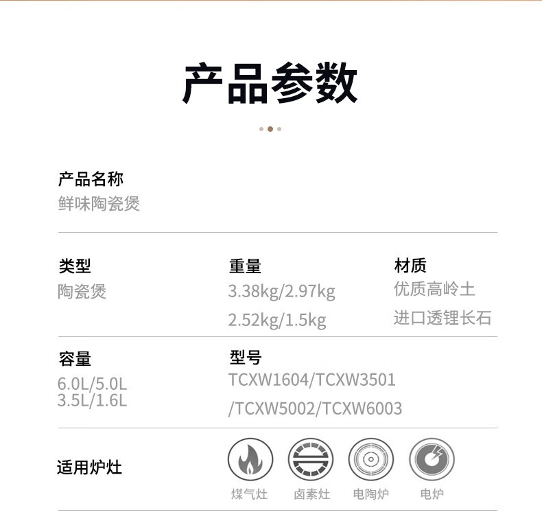 商品名称:炊大皇(COOKER KING)陶瓷煲TCXW3501 3.5L