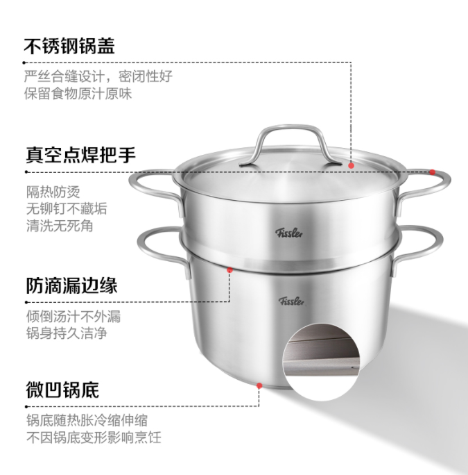 菲仕乐新家庭系列24厘米汤锅配套蒸屉套组EMP-SS2421N03(锅)/EMI-SS2421N03(蒸屉)