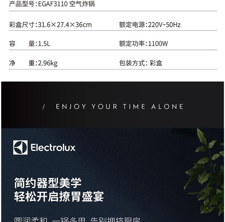 商品名称:Electrolux伊莱克斯 空气炸锅 EGAF3110 1.5L