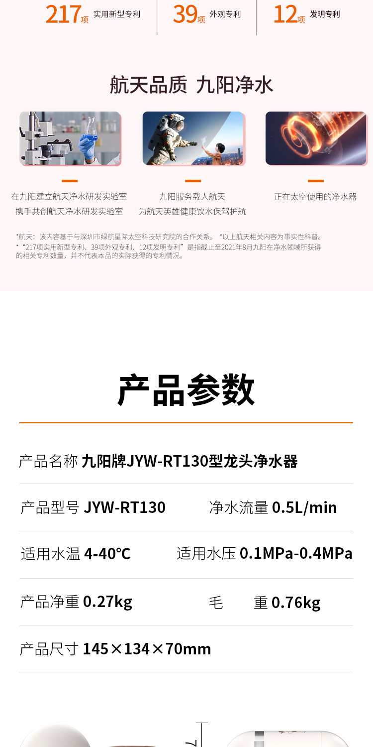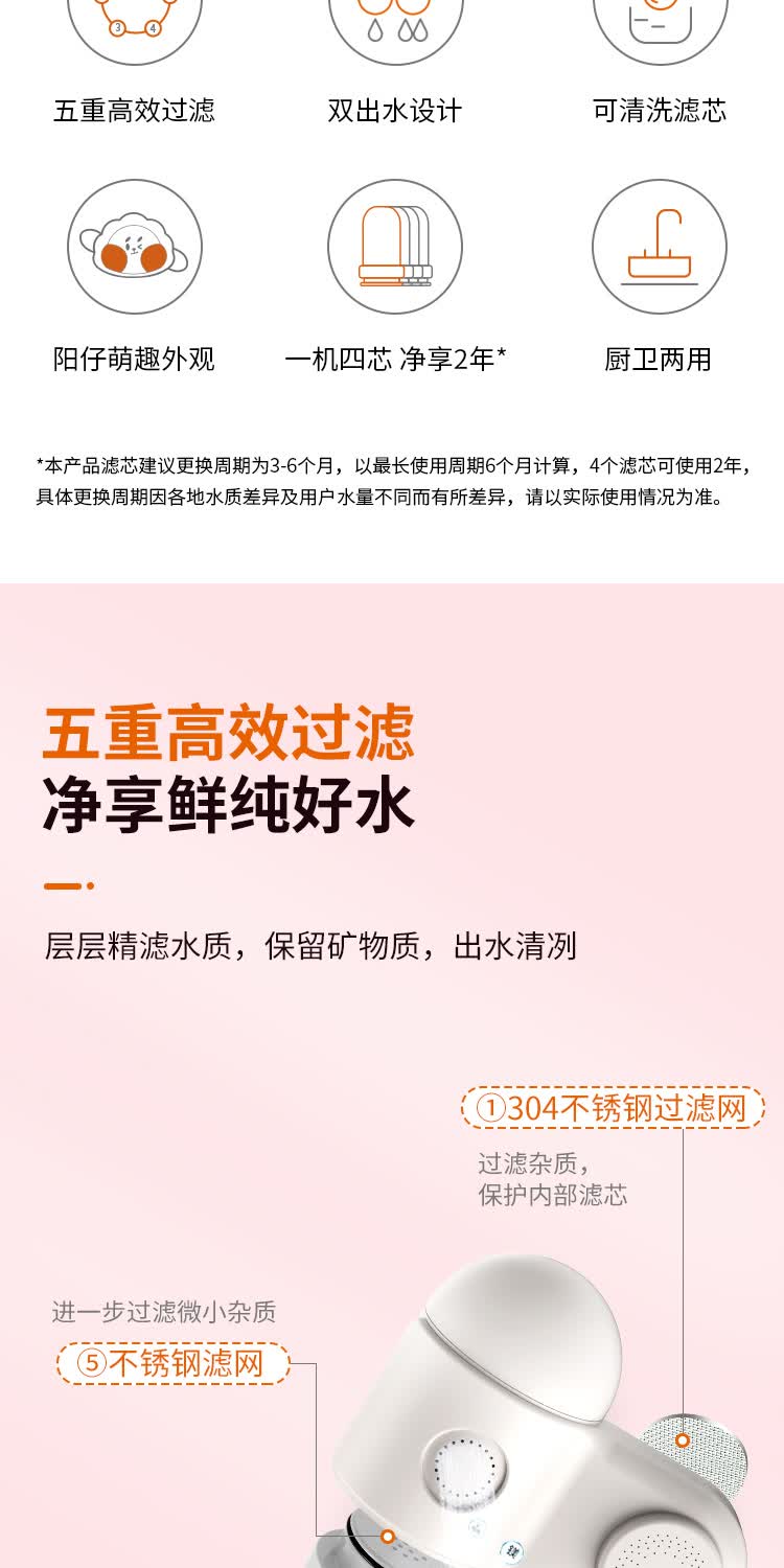 商品名称:九阳(Joyoung)净水器(一机四芯)JYW-RT130